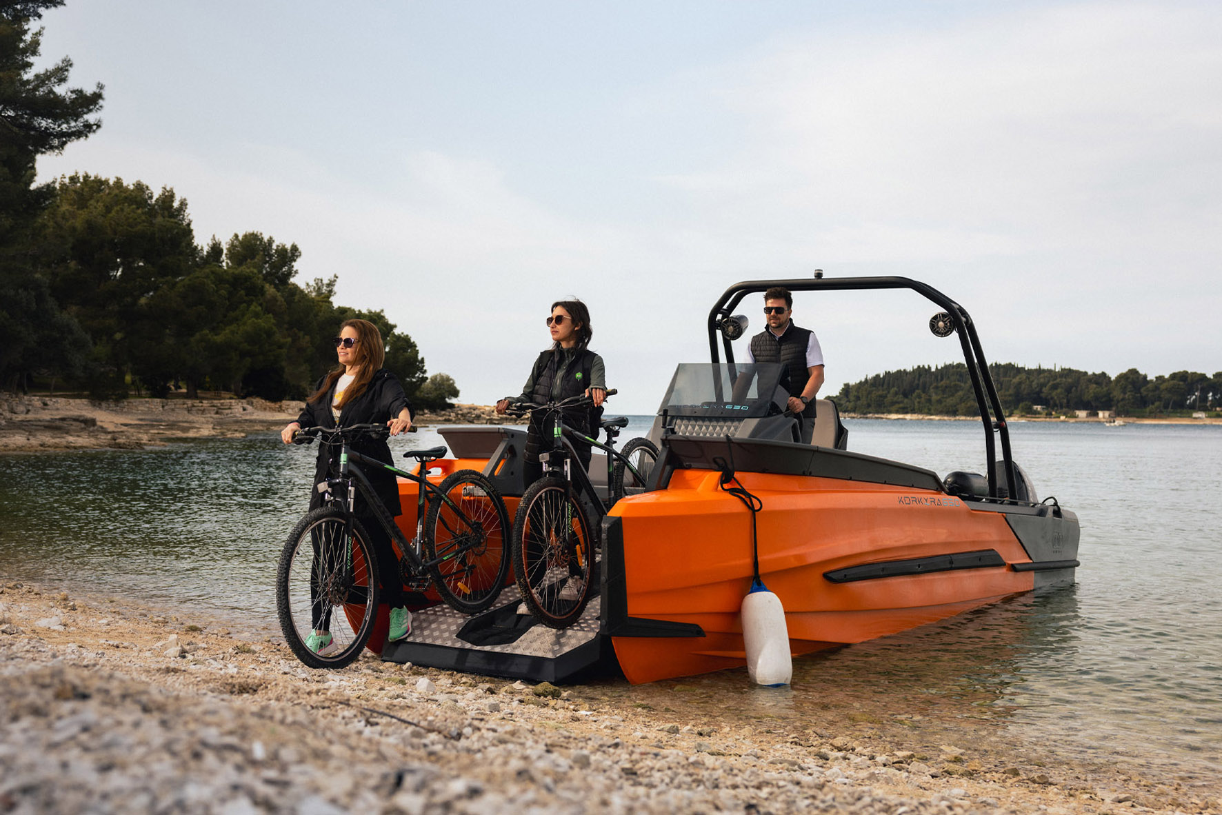 De Korkyra 650 Pro is een veelzijdige catamaran met laadplatform, ontworpen voor ultiem gebruiksgemak op het water. Het brede, lage oprijplatform maakt instappen en laden bijzonder eenvoudig. Passagiers, bagage, fietsen, kinderwagens en zelfs rolstoelen kunnen moeiteloos aan boord.